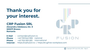 CRP Fusion is a reliable partner for providing dependable drug testing solutions, offering employers across Europe quick, accurate, and discreet testing services. We focus on pre-employment and random workplace testing to help businesses ensure safety, stay compliant, and boost productivity.