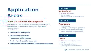 With certified partner centers across Europe, we offer broad coverage and fast turnaround times to keep operations running smoothly. Our validated testing technology ensures accurate, reliable results, while GDPR‑compliant processes guarantee strict confidentiality. We provide tailored solutions for businesses of all sizes and industries, combining precision, speed, and professionalism to support your workforce safety strategy.