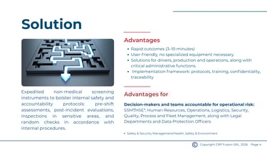 CRP Fusion supports a preventive safety culture. Our solutions help identify risks early, reduce incidents, and promote responsible behavior - without stigmatization or unnecessary escalation.